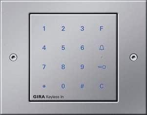 用 Gira Keyless In 产品,可以无需钥匙就能进入房间和建筑物。这项技术基于一个电子系统。密码键盘可以作为独立设备使用,也可以集成到 Gira 楼宇门对讲系统内。密码键盘可以安装到一个普通市售的设备盒中,而且室内和室外型号都可以整合到开关产品中。密码键盘有适用于开关产品系列 System 55 以及 TX_44 的型号。借助一个 55 x 55 mm 的适配器边框,可将 Keyless In 产品装入 Gira F100 程序中。